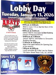 We ask you to please keep your membership updated, use the ABATE of SC website. You can pay your dues at any meeting or you can use the link under the Membership tab of the ABATE CWC website to navigate to the ABATE of SC website https://abatecwc.com/product-category/membership/